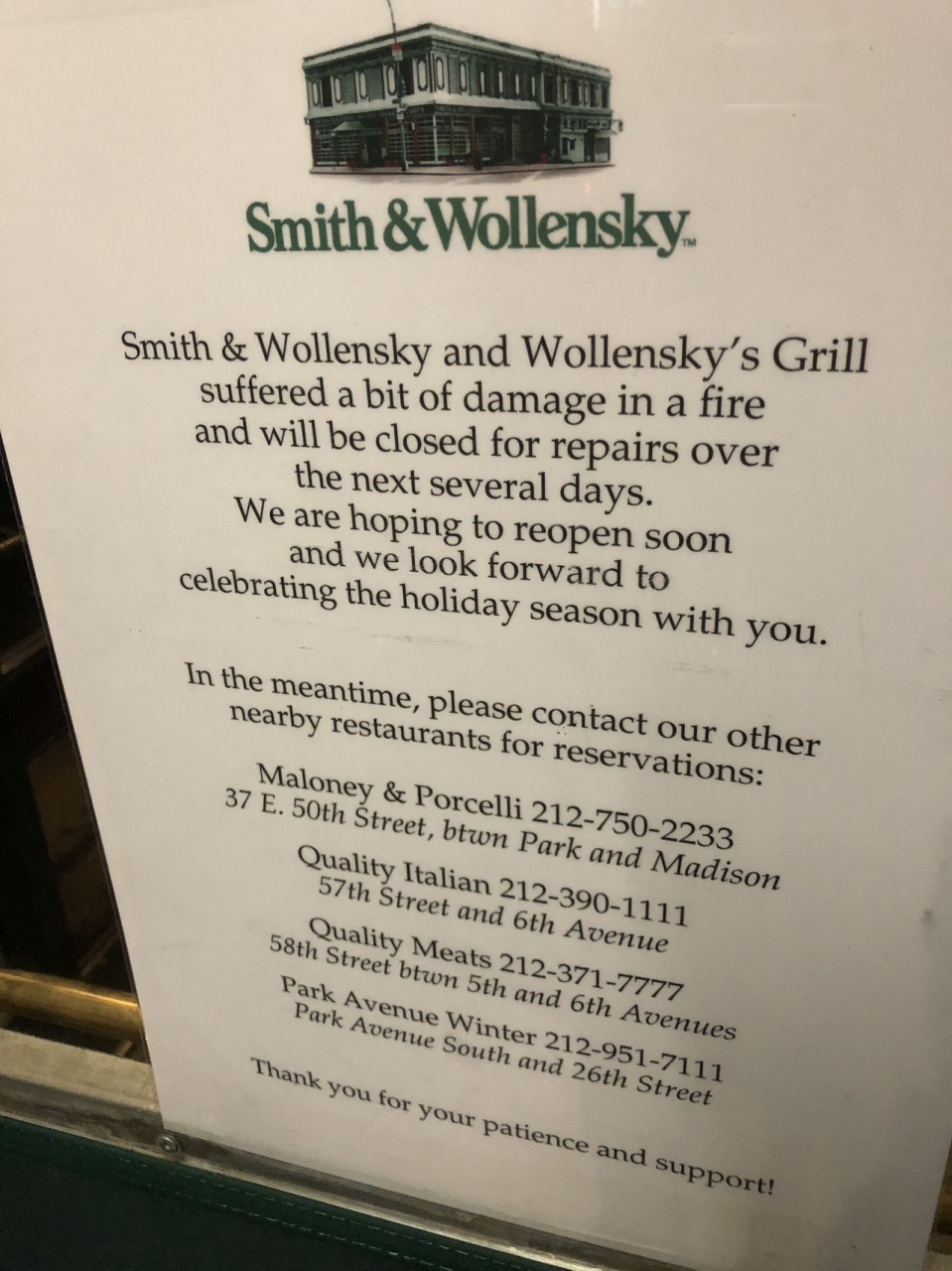 火事で休業
