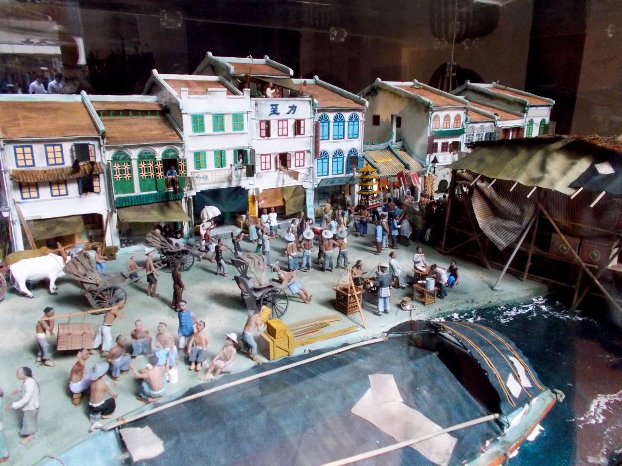 門をくぐった所の小さなスペースに、当時の様子を伝えるジオラマなどが展示されおり、そこが「博物館」。ガイドブックなどには開館10時と書かれていますが、脇の通路はビジネスマンたちの通勤路となっていて、10時前でも見学できます。
