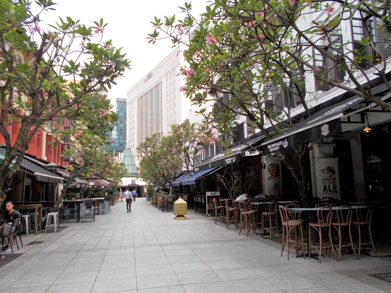 通路を抜けた所は、レストランが並ぶ「ファー・イースト・スクエア」。近くの北京ストリートも雰囲気がよく、北京ストリートがサウス・ブリッジ・ロードにぶつかる角にレトロな店構えの「ヤクン・カヤ・トースト」もあります。そこからチャイナタウンもすぐですので、チャイナタウンの観光と組み合わせるのもいいかもしれません。