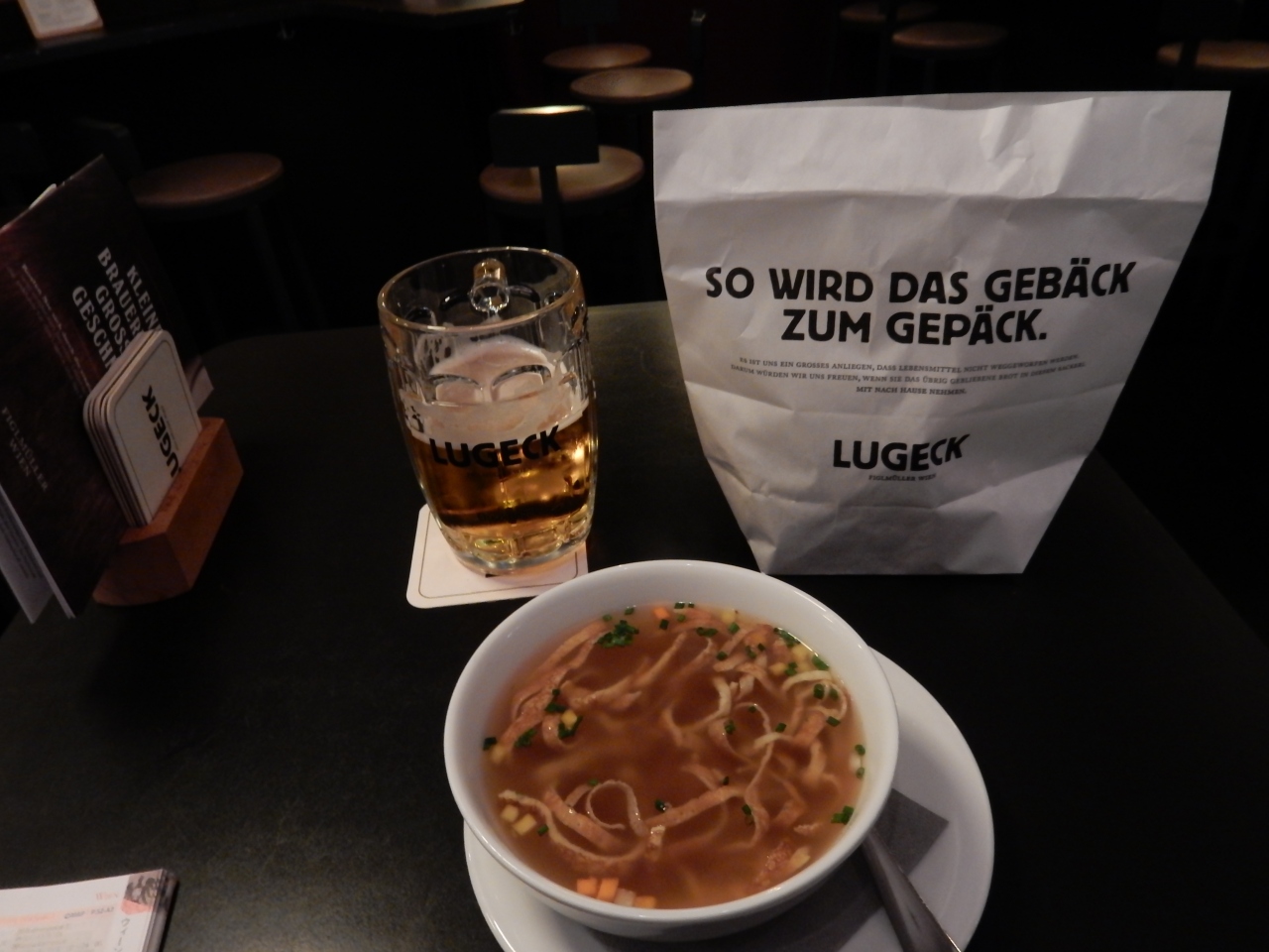 ビール、クレープの入ったコンソメスープ、グラーシュ(牛肉のシチュー)と、ウィーン名物を選んで食べました。美味しかったです。