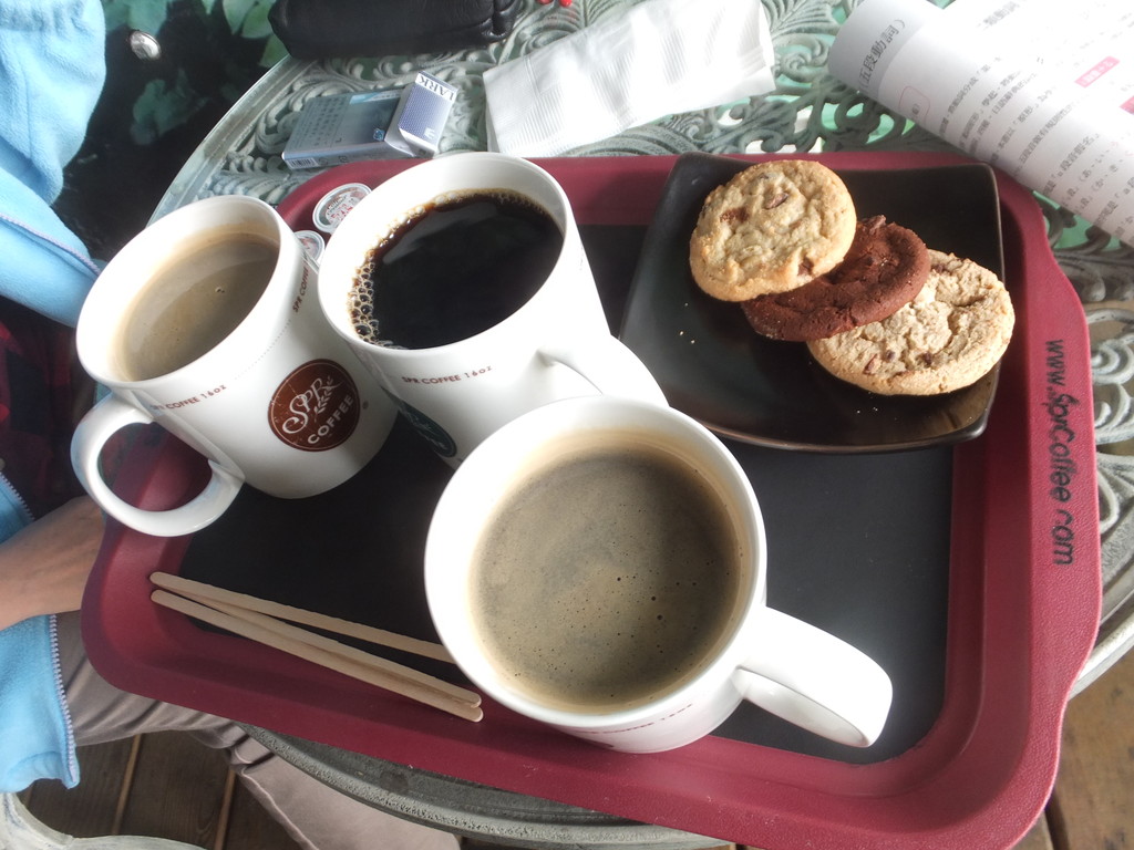 「黄家牛肉麵」で牛肉と葱の炒め(葱爆牛肉:150元)を食べた後、友人とSPR Coffee 喫茶店でお茶をしました。ここは室外に出ると煙草が吸えるのでお気に入りです。また、凹子底森林公園の景色も眺められゆっくりするのにはいいところです。