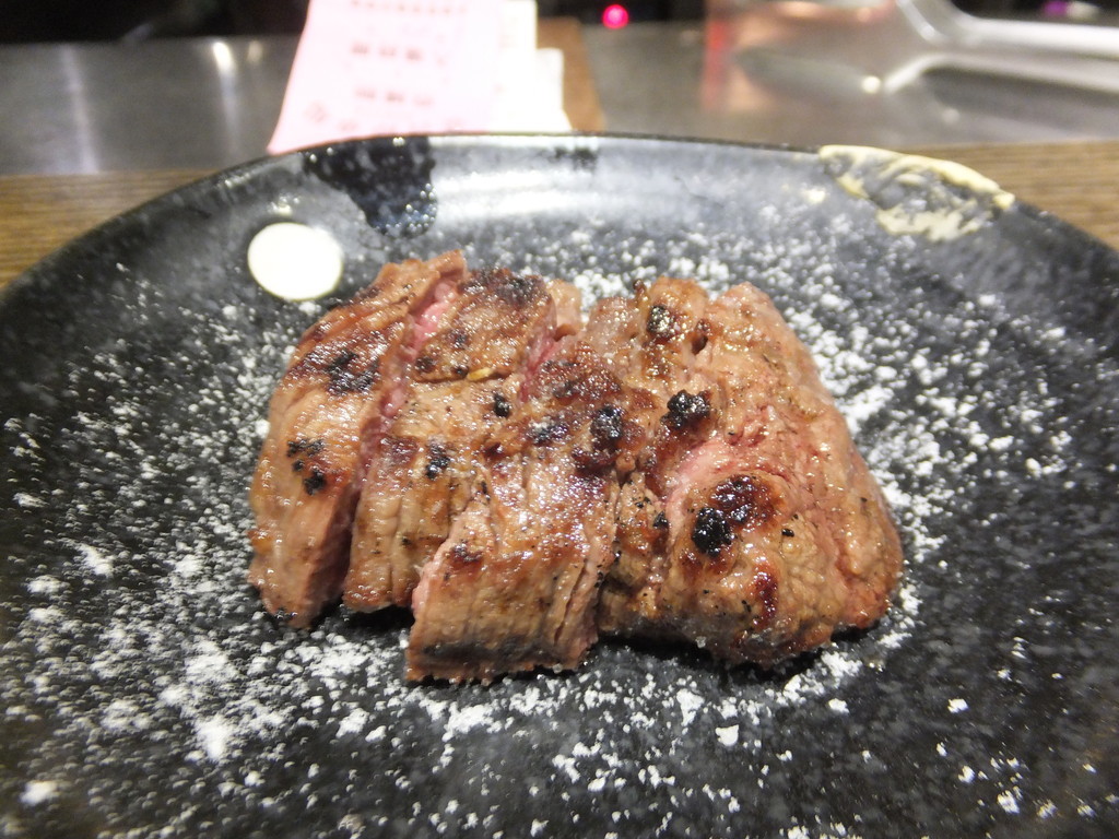 店内はカウンターでお店の人が食材を丁寧に焼いて、塩コショウをかけて出してくれます。