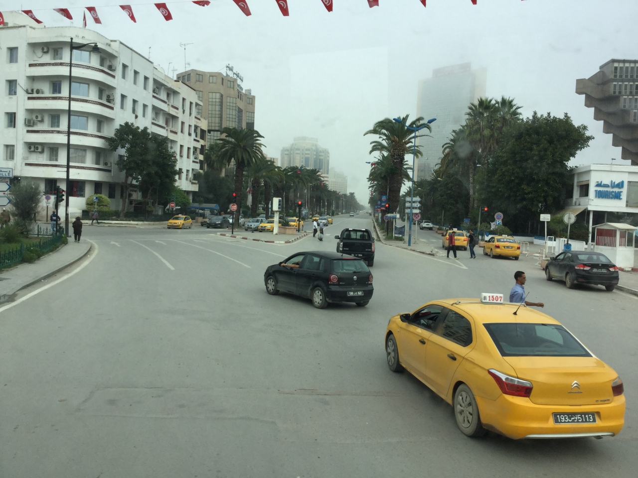 チュニジアのチュニスには黄色のタクシーが多く走っていました。結論から言うとタクシーには乗らない方がいいだろうと言うことです。