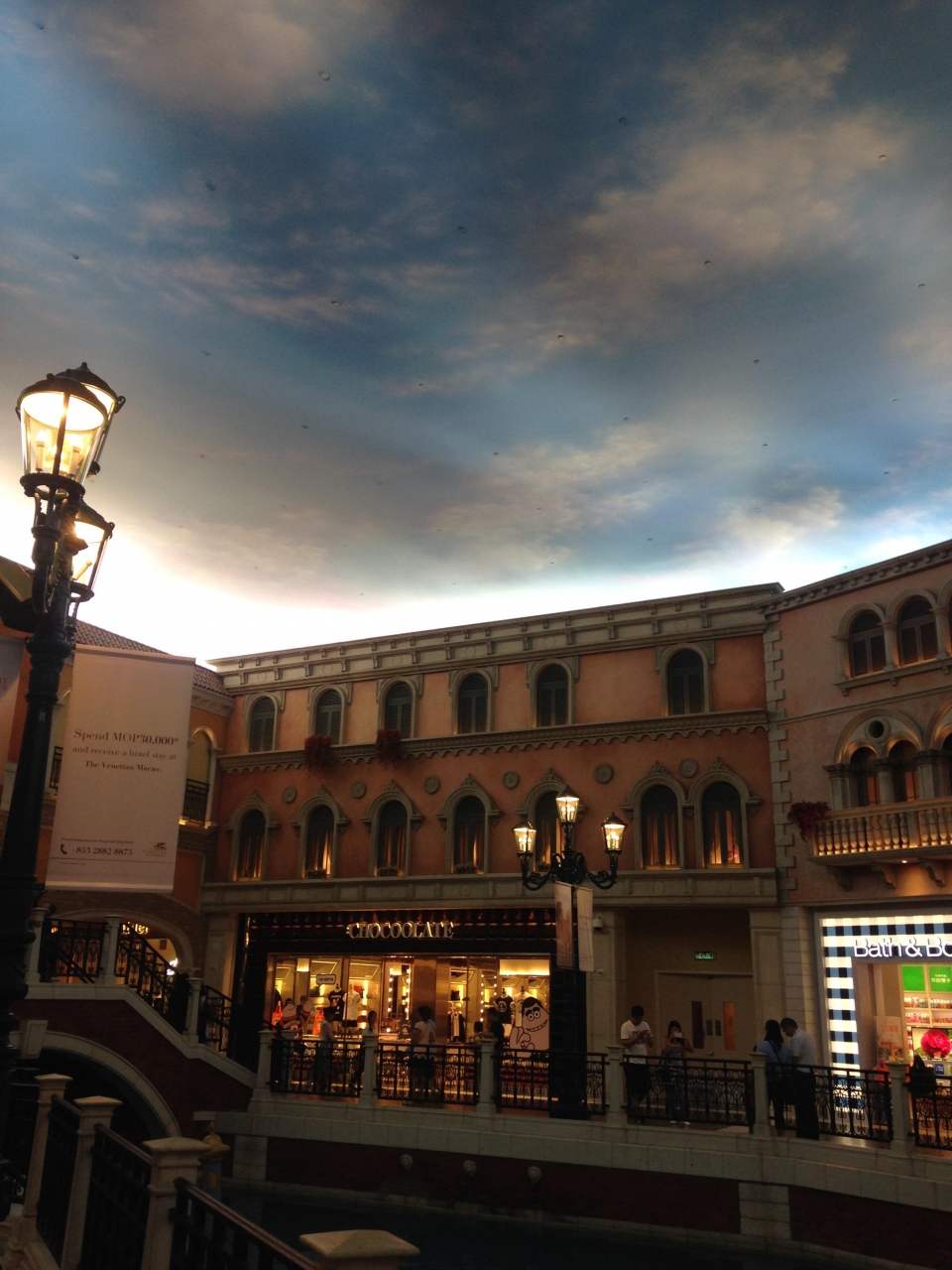 名前の通りベネチアを意識した造りとなっており、施設の中に天井を青空にし、水路まで再現したエリアまで作っています。