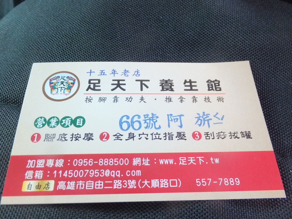 妻が身体がだるいと言うので、友人に行きつけの足裏マッサージを連れて行ってもらいました。行ったのは自由店、他にも色々お店があります。緩くもなく、きつくもなく私にはちょうどいい適度のマッサージでした。値段は1時間で400元。
