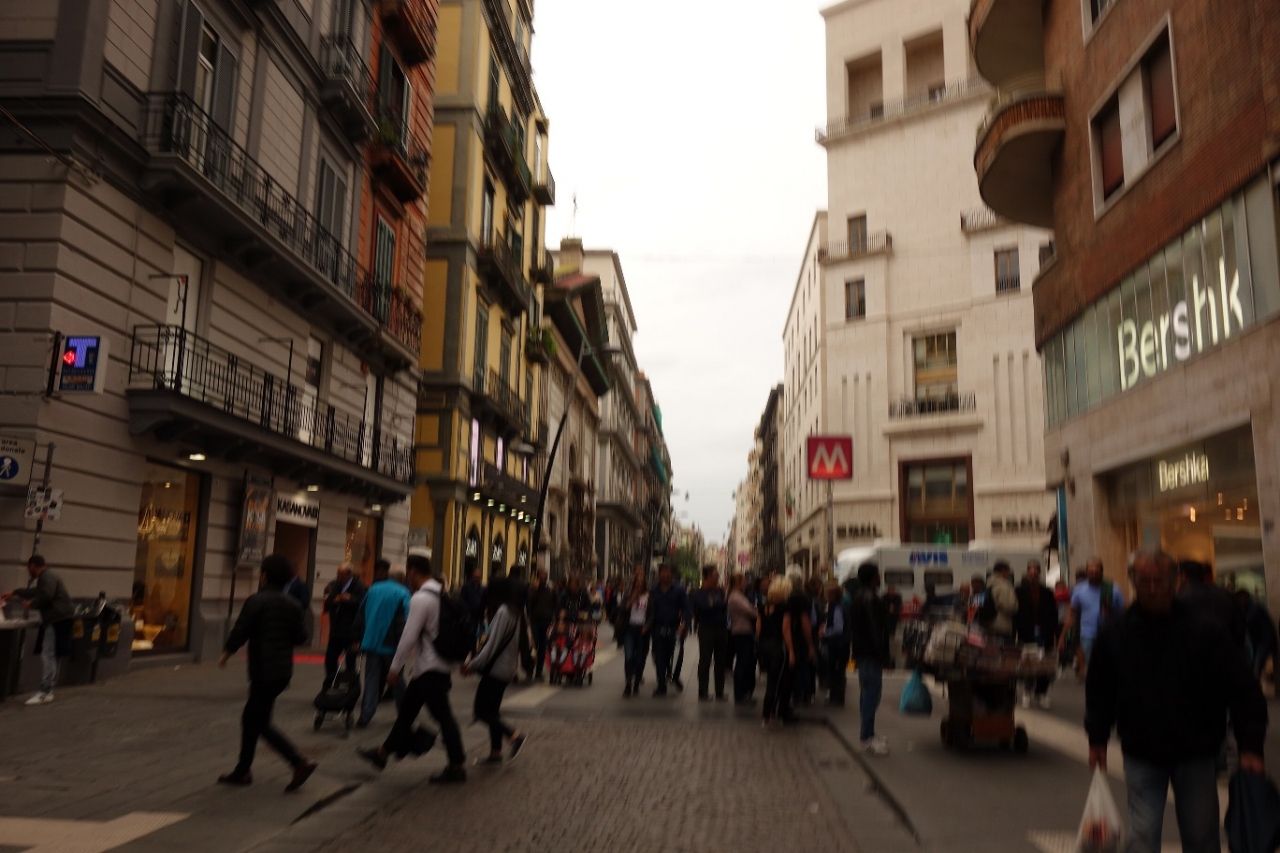 ナポリを観光中にこちらの通りを訪れました。想像以上の人出で大変賑わっていました。外国人環境客だけでなく地元っ子といった感じのおしゃれや流行に敏感そうな若者も多く楽しい雰囲気が漂っていました。ファッション店やカフェなど並んでいました。