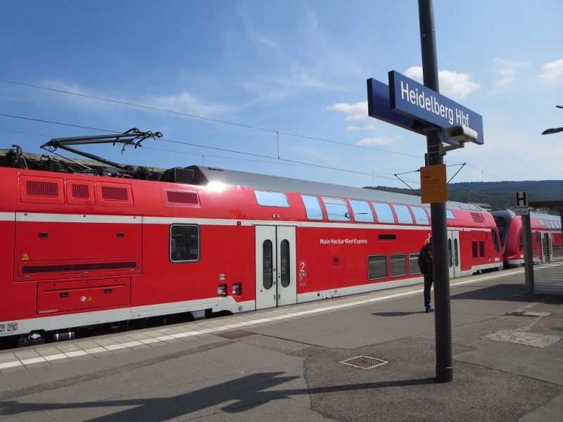フランクフルトから普通列車でハイデルベルクに行きました。ジャーマンレイルパスの1等車の切符を持っていたので1等車に乗りました。2等に乗った時は検札に来ませんでしたが、1等に乗るとすぐに検札に来ました。ICEは混んでいましたが、普通は空いていてのんびりできました。