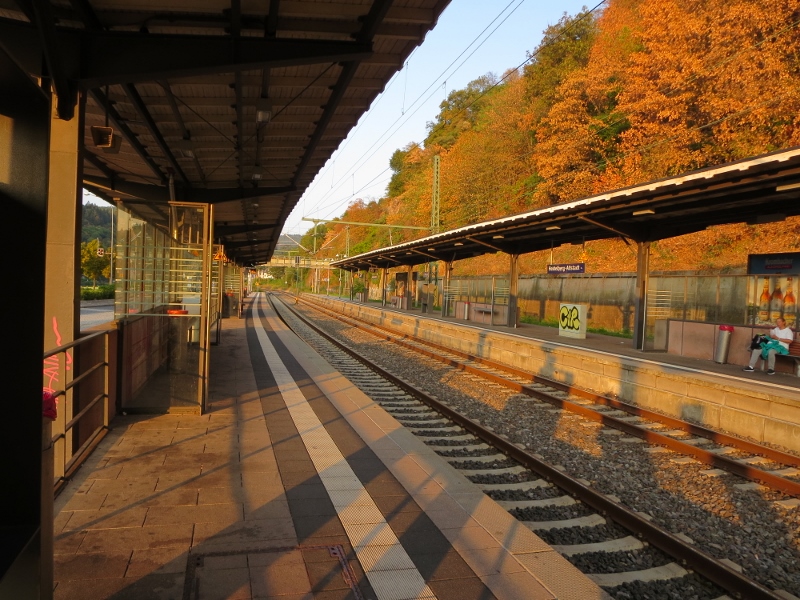 フランクフルトからジャーマンレイルパスを利用して、日帰りのハイデルベルク観光をしました。行きはハイデルベルク中央駅から歩きましたが、旧市街の主な所を観光して疲れたので、ジャーマンレイルパスでSバーンに乗ってハイデルベルク中央駅まで行きました。町外れにホームだけがある簡素な駅でした。