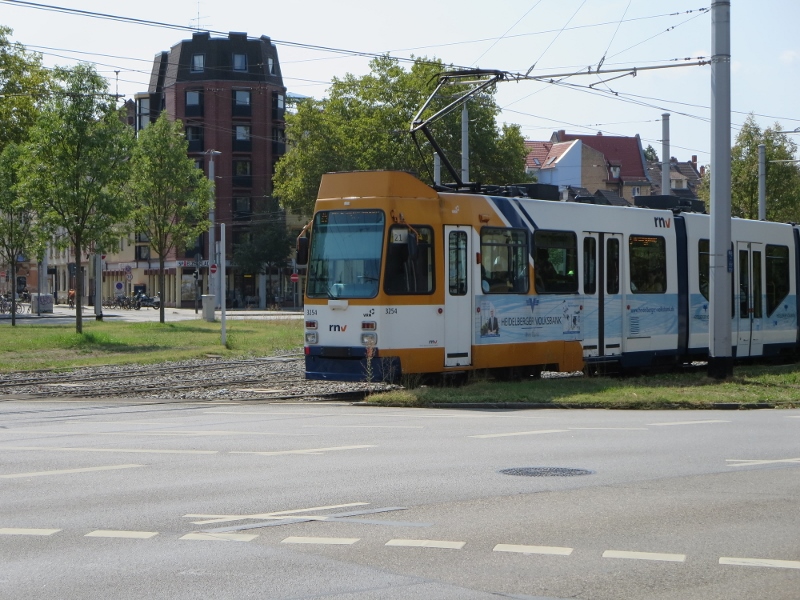 ハイデルベルク中央駅を出て旧市街はどこかと思った時にちょうどトラムが走っているのを見かけました。トラムの行先を地図で確認すると、ビスマルク広場から旧市街に向かうことが分りました。バスやトラムに乗って城まで行くならハイデルベルクカードが便利です。