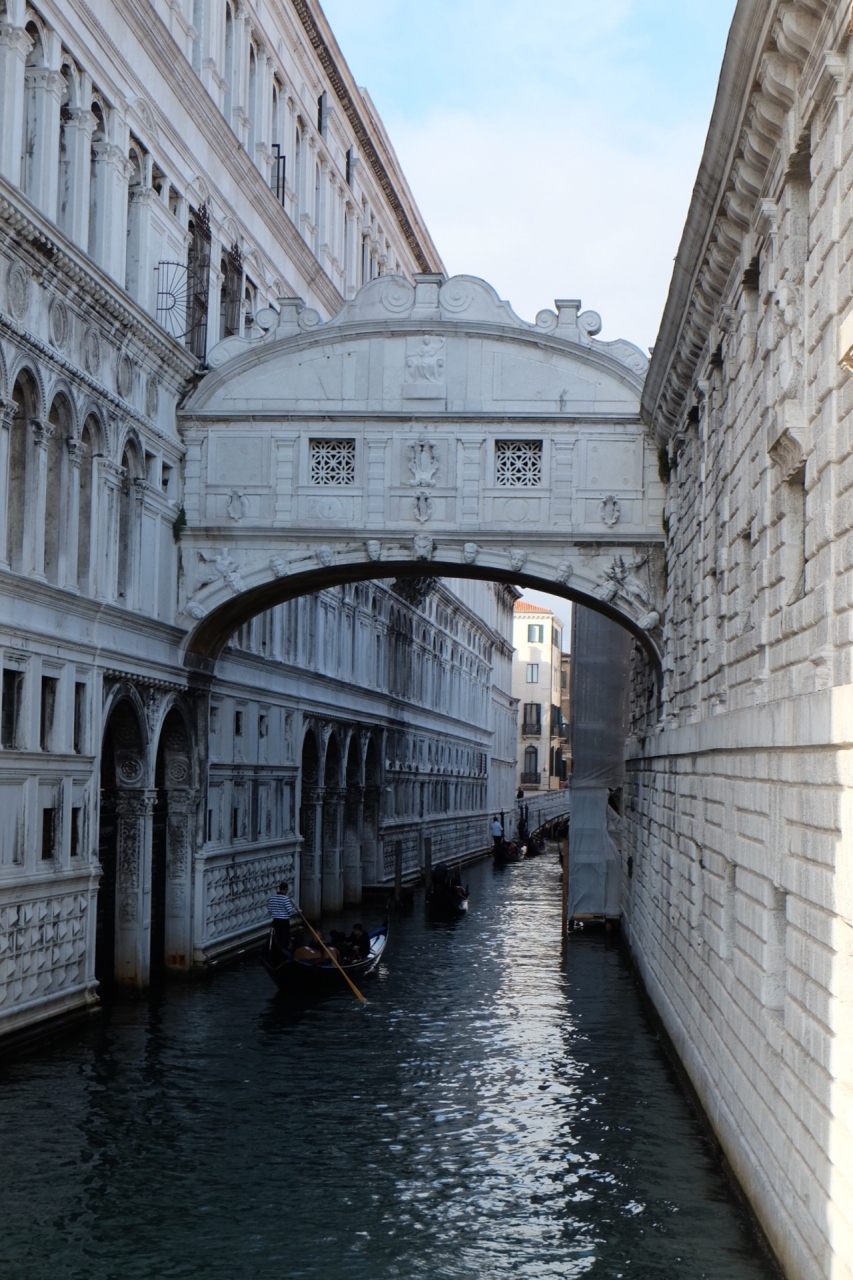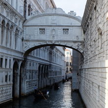 ベネチアの中でも有名な橋です。船でベネチアに着いてから歩いてすぐのところにあります。ドゥカーレ宮殿の尋問室と古い牢獄を繋いでいる橋で、囚人たちが牢獄に入る前に、最後となるベネチアの景色を見てため息をついたことからこの名前がついたそうです。手前の橋からよく眺めることができ、たくさんの人が写真を撮っていました。