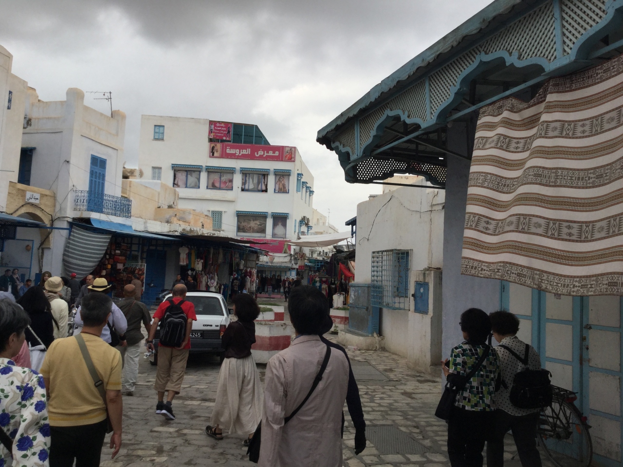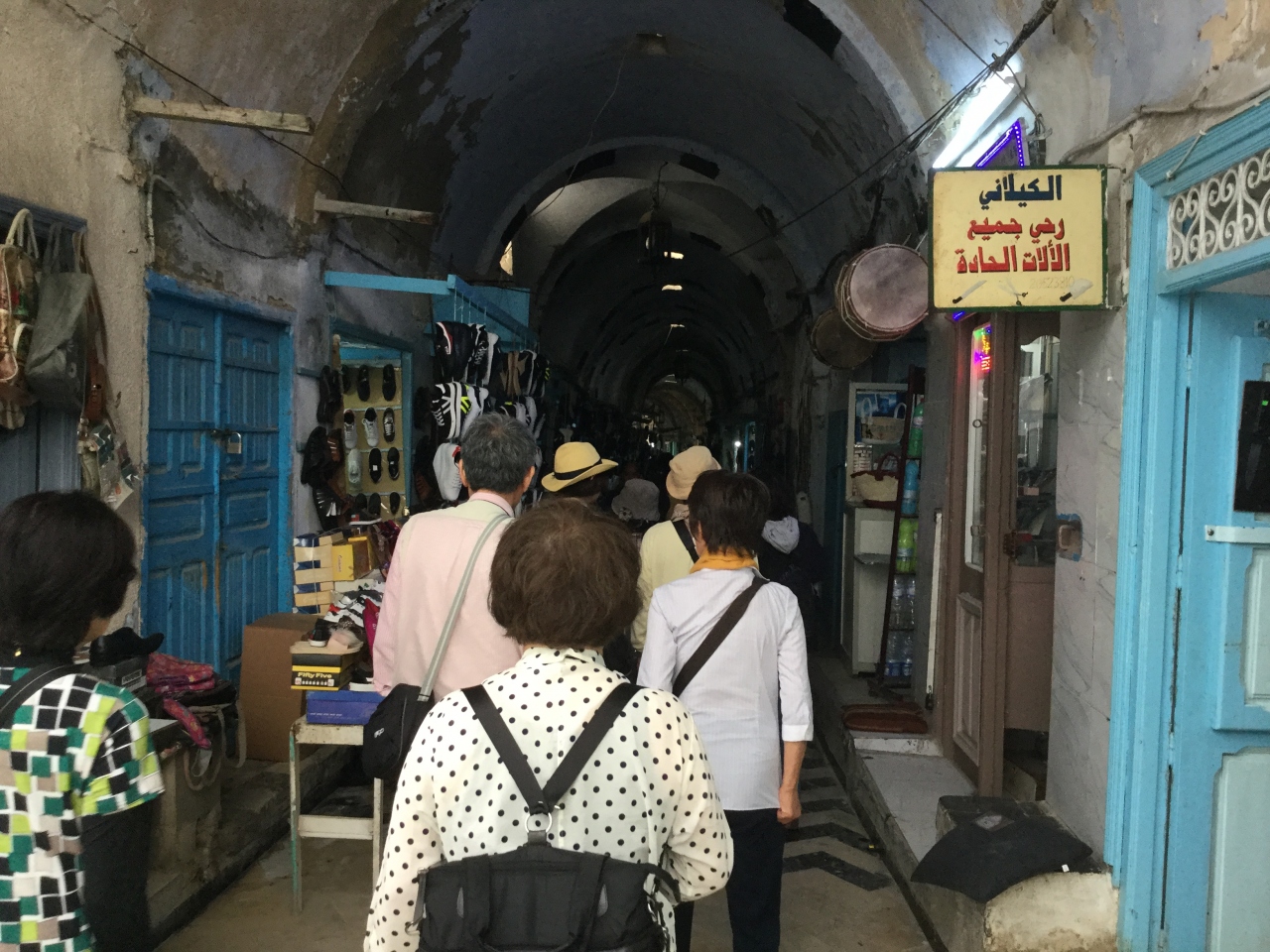 貴婦人の手のドアノックがある住宅街を抜けてメディナ商店街に行きます。