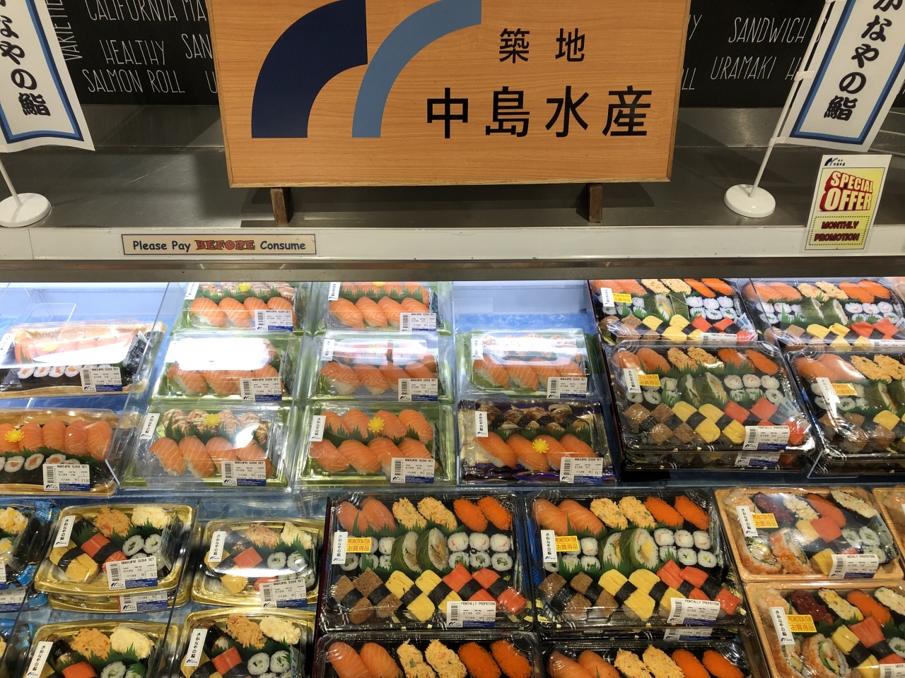 食品コーナーは日本のイオンのような品揃えで、コンコースにはいろいろおかずになりそうな食品や寿司(中島水産)がありマレーシア価格で買いやすい価格でした。