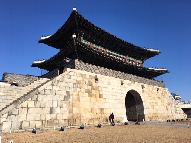 長安門は水原華城の北門に当たる門です。水原華城の正門だそうで、ソウルから来た王様は、この門を通って水原華城に入ったそうです。そのせいもあってか、想像以上に大きく立派な門でした。西門に当たる華西門から北側の城壁をとことこ歩いてたどり着きました。かなり大きな門で、水原華城を南北に貫く道路がこの門の下を通っています。