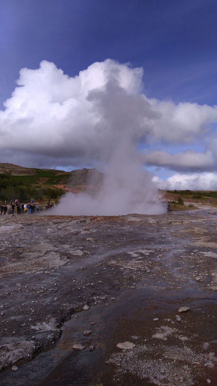 メインとなる間欠泉の周辺には、お湯が吹き上がるのを今か今かと待つ人で一杯。吹き上がるとちょっとした歓声が沸き上がります。