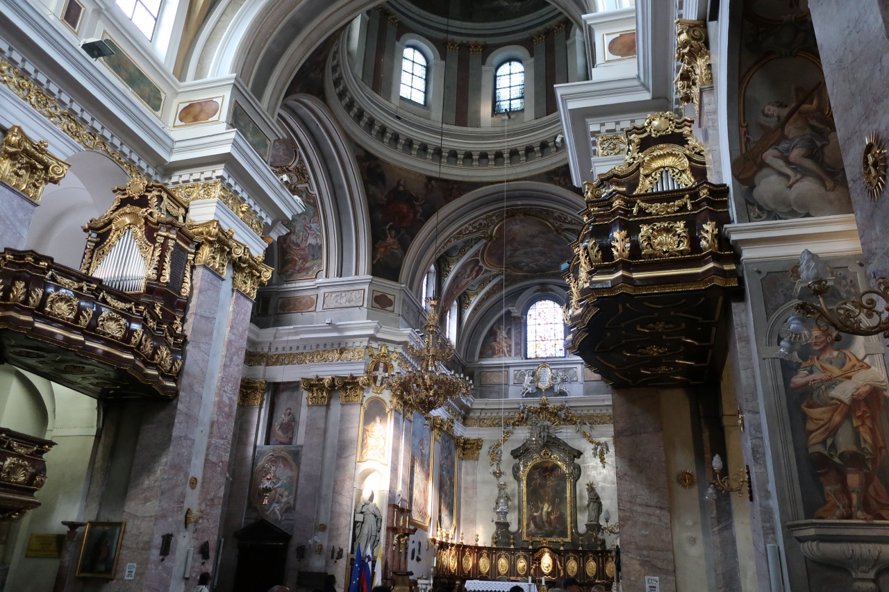 バロック調の内部はとても豪華で荘厳、見ごたえがあります。建物の外壁にも彫刻や絵画があったり、扉にもレリーフが施されていたりと外部も必見です。こちらもフランシスコ会教会と同様無料で見学できますので、是非訪れてみてください。