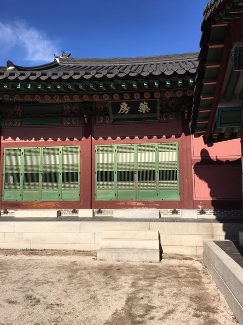 昌徳宮の正門の敦化門から入場して、真っ直ぐ進むと世界遺産の碑があります。ここを右に曲がって宮殿の中に多くの方が進んで行きますが、世界遺産の碑で曲がらずに真っ直ぐ進むと闕内各司の建物群があります。闕内各司は役所の建物群です。その中の建物の一つがこの薬房 内医院です。名前の通り、王族の治療を担う宮中の医療機関です。闕内各司の建物はとても複雑に入り組んでいるので、見つけるのに苦労しました。