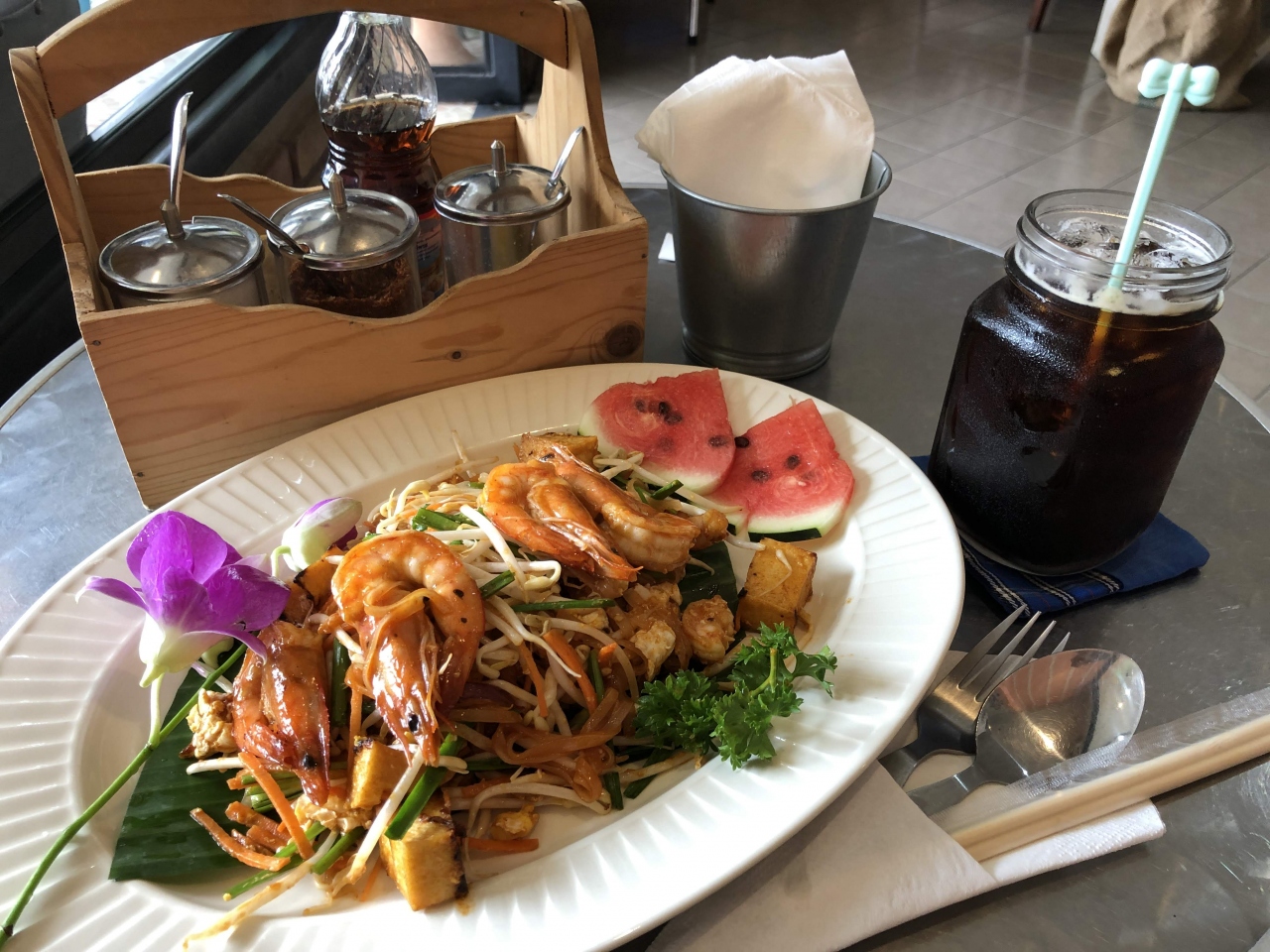 チェンライ第1ターミナル前にあるカフェです。雰囲気がよくて店員さんも親切で、かわいらしいわんこさんがお出迎えしてくれることもあります。Wi-Fiはちょっと遅めですが、食事のメニューが多いので、しっかりごはんが食べられるのがありがたいです。
