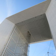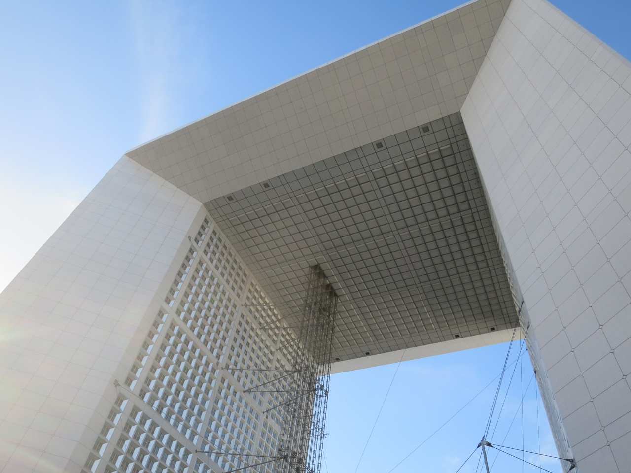 凱旋門の延長線上に建つ近代的なビルです。新凱旋門というよりもグランダルシュのほうが現地の人には通じやすいと思います。鉄道駅から地上に出ると頭上にそびえており、あまりの大きさに圧倒されました。近くで見るよりも遠くから眺めたほうが形状を確認しやすいと思います。