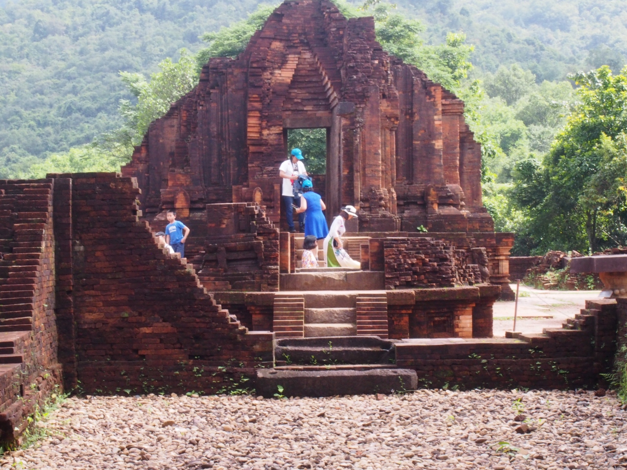 ホイアン郊外にあるベトナム中部に栄えたチャンパ王国の聖地に築かれた遺跡です。チャンパ王国の文化はクメール王朝のアンコール遺跡の影響を強く受けています。遺跡の建造物はアンコール遺跡のものとよく似ています。アンコール遺跡が砂岩やラテライトで造られていますが、ミーソンの場合は煉瓦で造られています。そのために外観の彫刻などはほとんどありません。ベトナム戦争での爆撃地になったために、遺跡の3分の2は破壊されてしまいました。現在は修復中のようです。