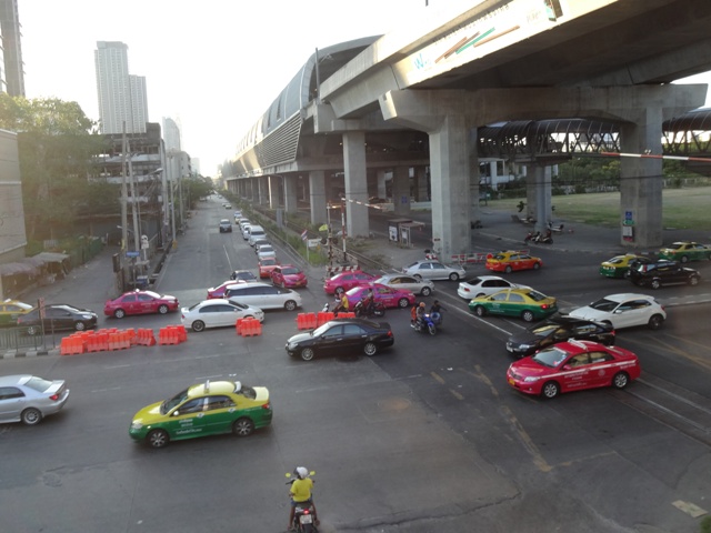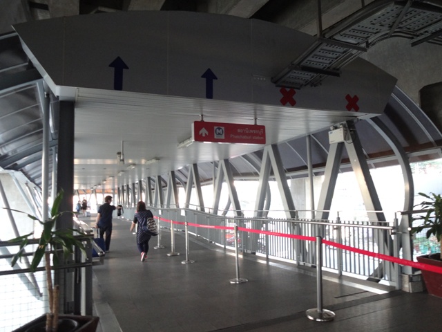 エアポート・レイル・リンクのマッカサン駅は、バンコクでも大きな通りとなるペップリー通りとアソーク通り交差点にあります。ARLマッカサン駅とMTRペッチャブリー駅は、陸橋で渡って約5分の距離にありますが、スロープも整備されており、スーツケースを運びながらでも問題ありませんでした。陸橋からはタイ国鉄の線路や渋滞名所のアソーク通りを眺めることができますので、めざましい経済発展とアジアの混沌を見つめることができます。
