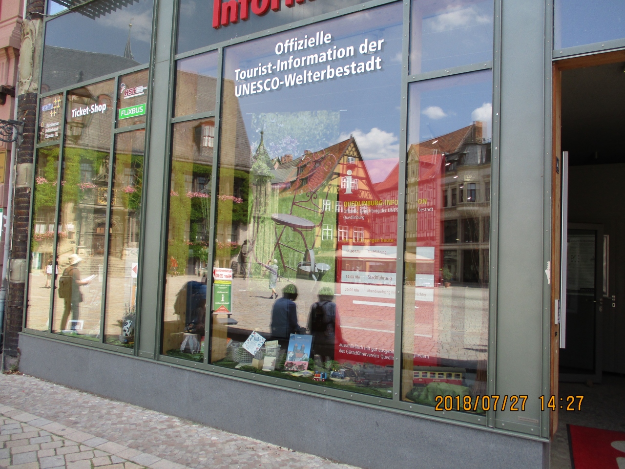 クヴェトリンブルク旧市街の中心、マルクト広場に面してたっています。この街を訪れた日に、ここのインフォメーションで街の地図をもらい、セルヴァティウス教会と城博物館への行き方を尋ねました。わかりやすく親切に教えてくれました。
