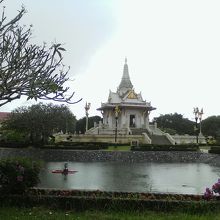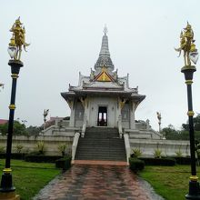 ヤラーは都市計画によって町並みが整備されていることでも知られています。それを象徴する政府系の機関が集まる大きなロータリーの中心にラク ムアンはあります。ラク ムアンとは“市の柱”という意味で新しく町を建設する際に基準となる柱を立て、繁栄を願うというバラモン教の教えによるもので信仰の対象にもなっています。普段なら参拝する方がいるのかもしれませんがあいにくこの日は雨、参拝客は誰も見かけませんでした。周りは芝生が植えられ池のある公園になっているので晴れた日ならもっと楽しめると思います。