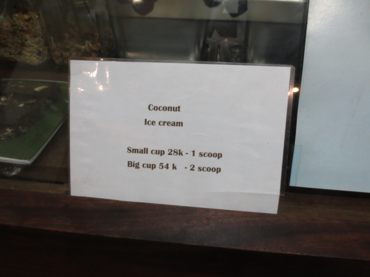 ゴータマ通りにあるこじんまりしたアイス屋さん。色々な種類のアイスがありますが人気はココナッツアイスのようです。1スクープで28000ルピアもしますのでちょっと割高感はありますが味は上品で甘すぎずさらっと食べられます。2スクープ(54000ルピア)もありますが、飽きます。
