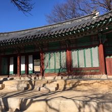 昌徳宮の正門の敦化門から入場して、真っ直ぐ進むと世界遺産の碑があります。ここを右に曲がらずに真っ直ぐ進むと闕内各司の建物群があります。検書庁はその中の建物の一つで、歴代の国王がお書きになった懸板を保管する場所です。韓国の王宮の中に在るのに、中国風の作りが珍しいと感じました。