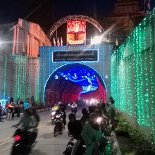 ネットではタイで唯一の自動車用トンネル書いてありましたがホントなんでしょうか?長さ200mほどの立派なトンネルですが周りの道路状況から見てもわざわざ安くない費用をつぎ込んで造る必要があったのかと疑問に思います。が、その姿は夜になると一変します。イルミネーションがチカチカ〜。入口だけでなくトンネル内も飾られてなかなかの姿に…。写真的にも映えるのかかなりのギャラリーで賑わっています。このトンネルを見るために観光客が訪れてくれるならいくらかの経済効果があり、造った意味も全くないわけではないのかもしれません。実はそれが目的かな。