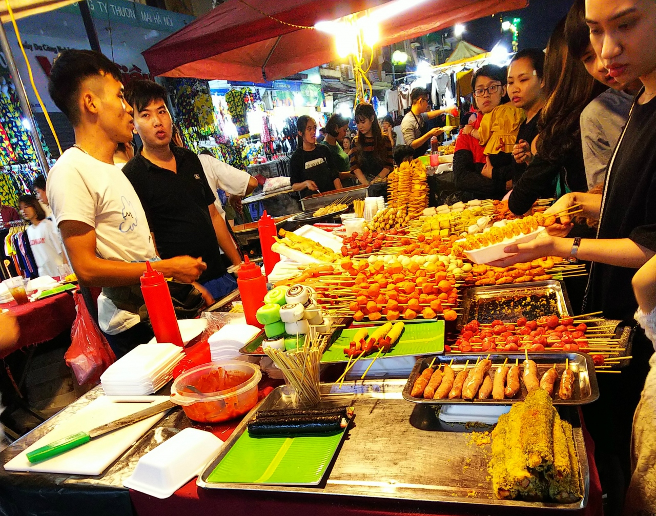 ナイトマーケットは、旧市街のホアンキエム湖北部から徒歩1分の場所。