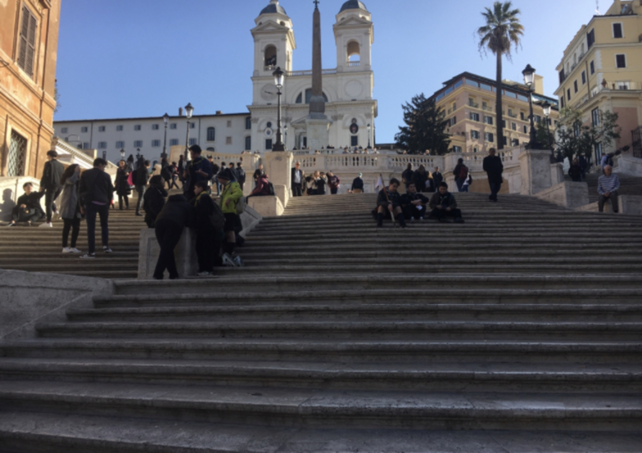 スペイン広場といったら、映画で有名なスペイン階段です。日中はとても混雑している階段ですが、朝は人が少なく、空いていました。逆光なので写真を撮るのには向かなかったですが、人が多く混雑した中写真を撮るより良かったです。