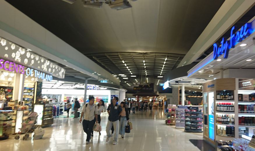 スワンナプーム国際空港のDFSは十字路に延びたかなり長いエリアになっています。出発エリアの下階のラウンジエリアにも何件かあります。ブランド品・化粧品は結構高いです。タイでの最後のお土産探しはタイのコスメなどがお勧めです。