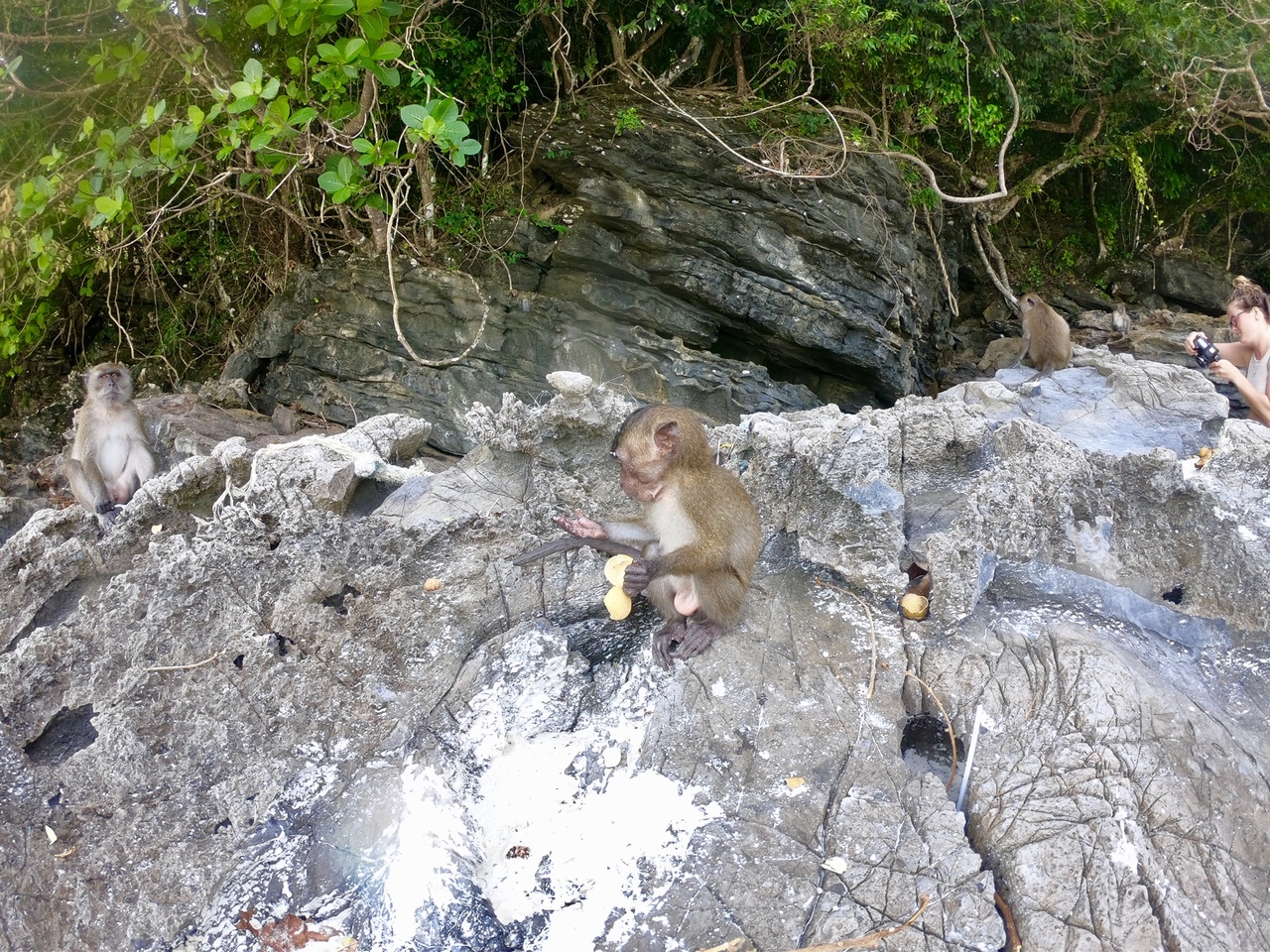 ツアーで参加しました。モンキービーチ、本当にお猿さんがいました。子猿と親猿子。人を怖がらず木のみを食べてました。浜は粘土のような浜で痛くなく歩きやすくて海水浴しやすいです。この浜がとってもきにいりました。体に塗ってパックしてる方もいました。お魚さんも少しいました。
