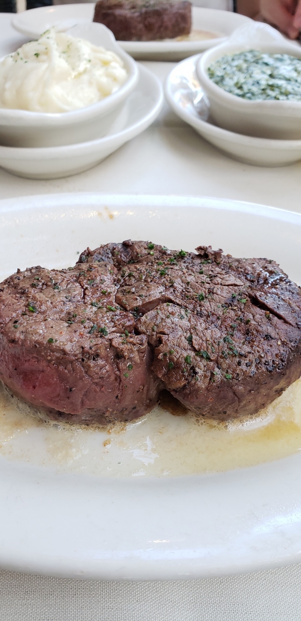 ハワイといえば、ステーキ。有名店に行きたいなと思いながらもどこも高く、お得にステーキが食べられるプライムタイムをやっているルースズクリスステーキに開店前に向かいました。到着すると先に5組程並んでおり、ほとんどは日本人でした。予約もしていないため入れるのか不安になりながら開店を待ち、外の席ならと無事ステーキにありつけました。前菜にはスープかサラダを選ぶ事ができ、私はサラダを選びましたがお皿いっぱいで1人前とはいえない量でした(笑)メインのフィレステーキもプチとはいえ、十分な大きさで食べ応え満点です。バターのソースととても良くあい本当に美味しかったです。デザートまで美味しく頂きました。