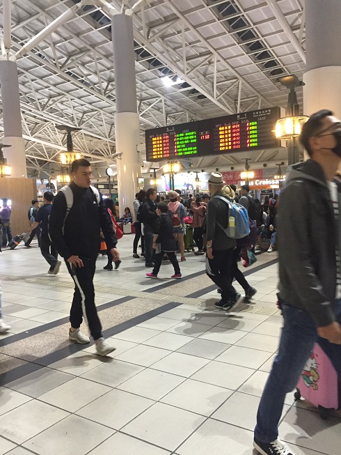 台北から新幹線で高鉄左営駅まで来ました。時刻表示の電光掲示板も見やすく次の電車が分かりやすかったです。人が多くて賑わっています。でも案内表示も見やすく乗り換えも簡単にできました。