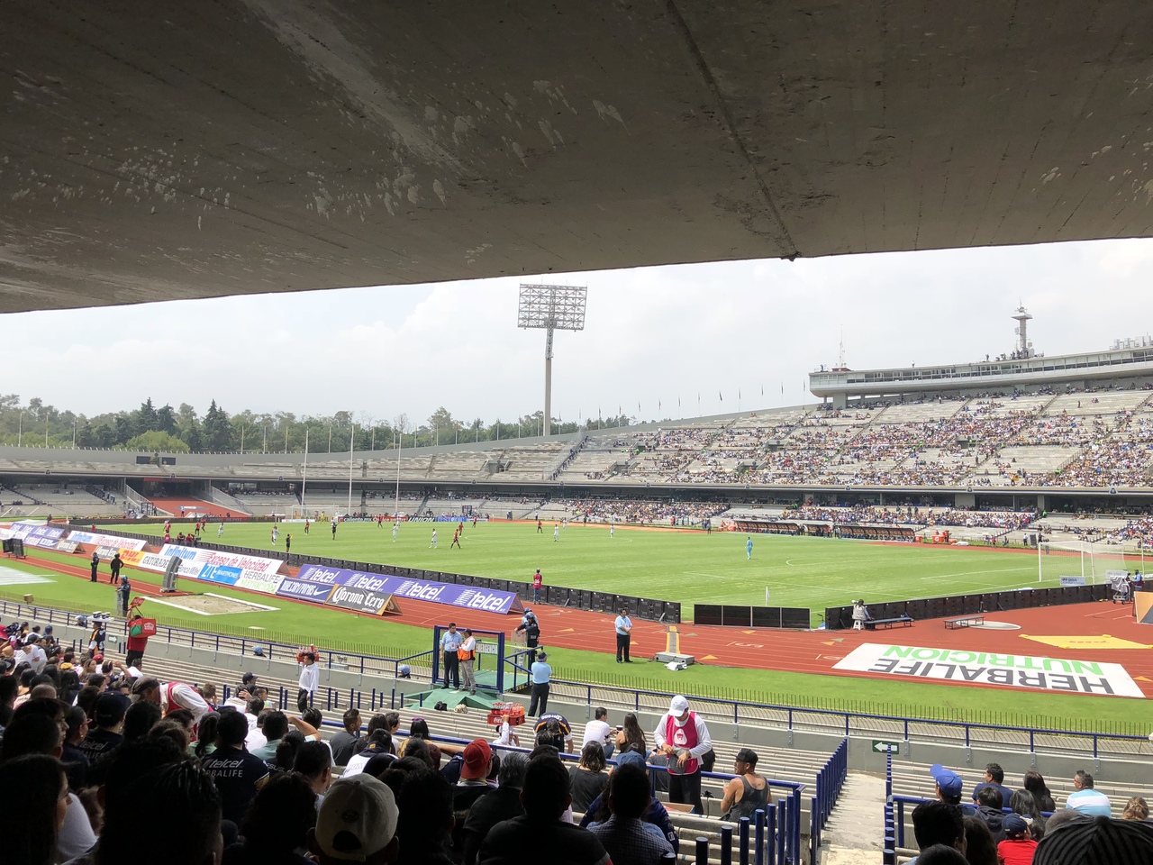 この日はメキシコの独立記念日だったため、試合があるとは思わずスタジアム外側を見学していたところ、試合が行われていることに気付きました。
