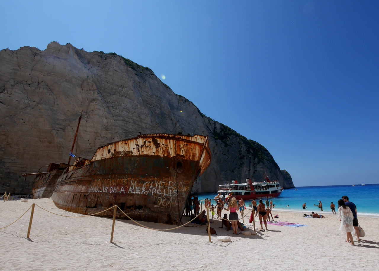 なぜこのような色かはよくわからないが,コバルト色の海が広がる.北海道の青い池とおなじような水酸化アルミニウムなどなのだろうか..不思議だ!1983年にシガレットの密輸船が難破 そのためShipwreck Beachと呼ばれるようになった 本来はNavagio Beachという.