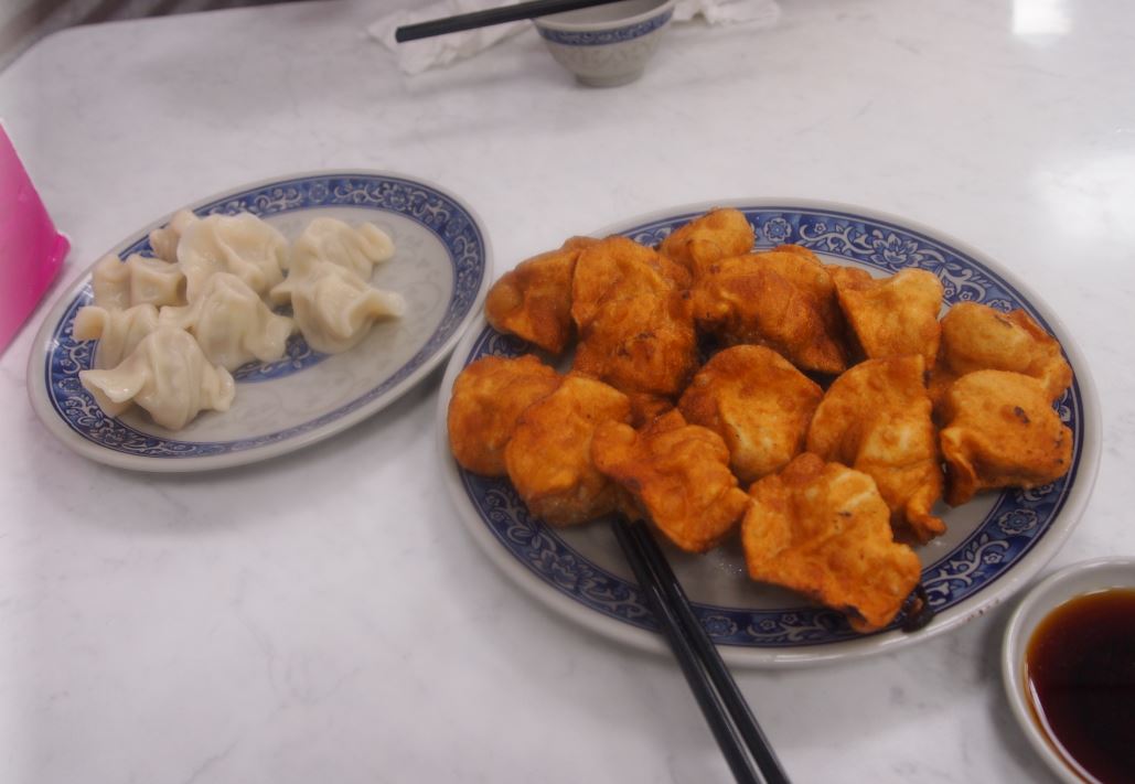 台北の水餃子の名店老牌山東水餃大王。揚げ餃子などバリエーションもあります。辛いタレは自分で追加できますが掛けすぎると大変な事になります。ニンニクたっぷりの蒜泥白肉(豚バラのにんにくゆで豚)が個人的にはお薦めです。