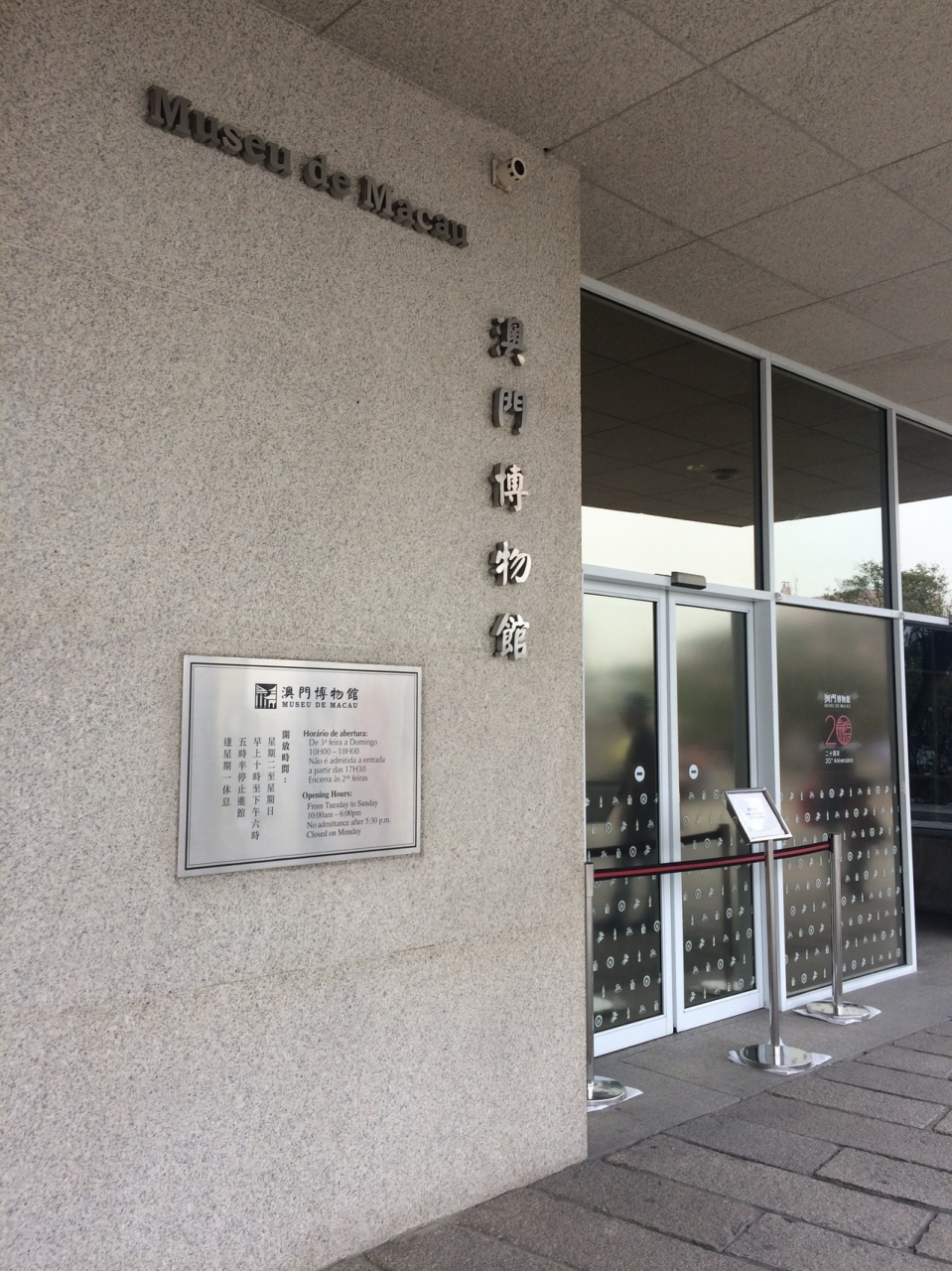 マカオの大砲台公園のてっぺんにあるのが、マカオ博物館です。とても小高い所にあるので、マカオから珠海まで見渡せます。エスカレーターで降りて、受付でチケットを買って入場します。ロビーみたいなところにソファがあります。月曜日がお休みです。