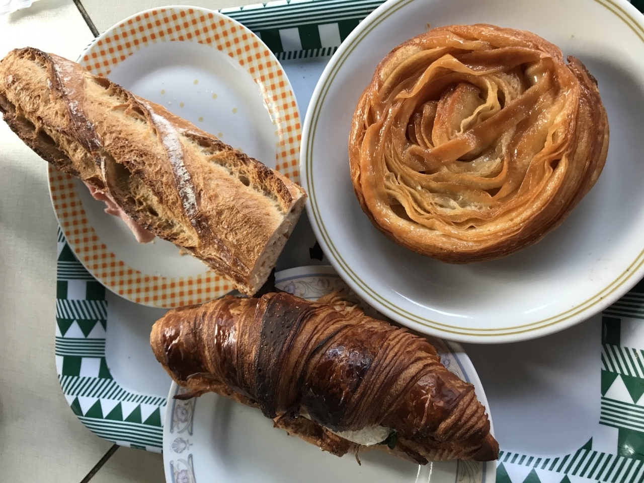 日曜の朝に訪問しました。7:50についた時、お店の前に1人並んでいて、外テーブルに2組座っていました。4人席を確保して待っていると、8時には6組ほどになりました。お店がオープンし、クロワッサンのマッシュルームサンド、ハムのバゲットサンド、クイニーアマンを注文、更にラテとフラットホワイトを注文しました。パンはすぐに温めて渡してくれましたが、コーヒーは席番号を伝えてもってきてもらいます。これで34.45ドル。高いと思いましたが、パンはいずれもレベルが高く、バゲットのパンは噛み締めると旨味があり、クロワッサンも絶品で、コーヒーも美味しく、それだけの価値があると思います。