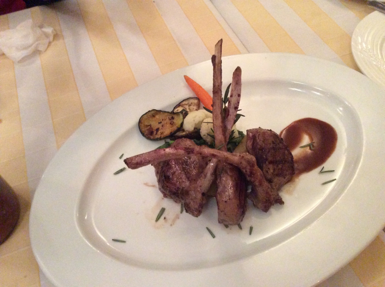 - 8人で行って、アラカルトメニューを頼み、写メにある料理などにワイン3本、シャンパン3本持ち込みで開けて一万六千バーツほど