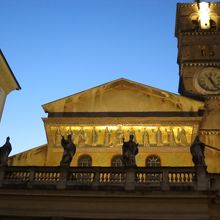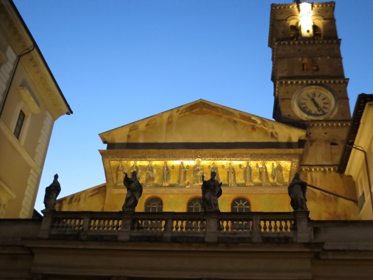 サンタ マリア イン トラステヴェレ教会 はローマ最古の教会だとのことです。立地的なことも影響しているのかどことなく庶民的な雰囲気のする教会でした。暗くなって訪れたので照明で照らされた教会全面のファサードがとても美しい教会でした。