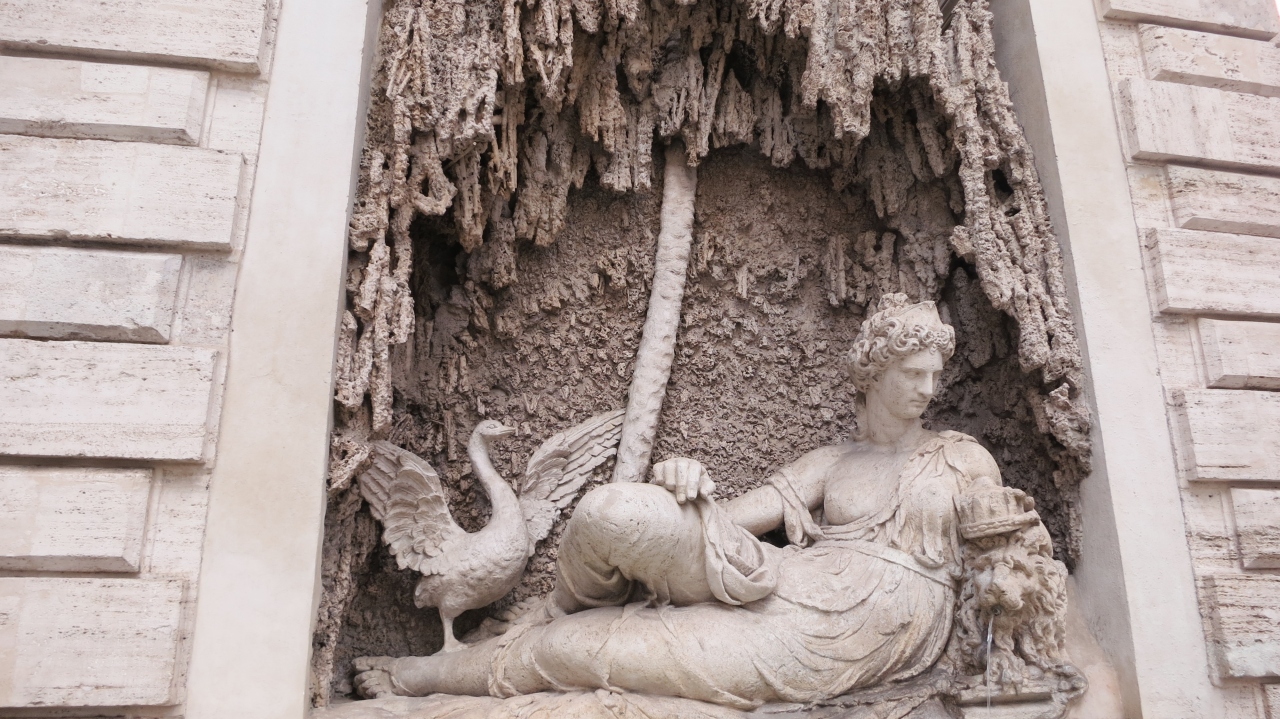 目立っているという感じの噴水ではありませんが、サン カルロ アッレ クアットロ フォンターネ教会のクワトロ・フォンターネ通りに面した四つ角の一つ一つに噴水が作られていました。特に立ち止まって見てゆく人もいないようでしたが噴水の一つは教会の壁に造られていました。