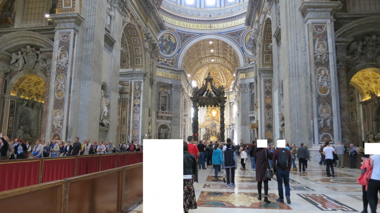 サン ピエトロ大聖堂に入るための多くの観光客が列にならんでいました。人の多さと太陽の日差しの熱に倒れそうになりました。よく見ていると並んでいる列によって進み具合がかなり違っていたり、2つの列が途中で1つの列になり同じゲートを利用する列があったりしました。どの列を選ぶかが勝負の分かれ目ようでした。