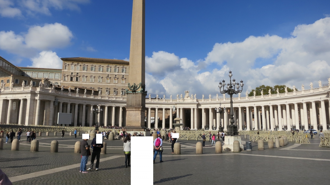 広場の周りを楕円形に囲む柱とその上に置かれている聖人像がとても印象的な広場でした。聖人像もそれぞれ違った動きをしていて本当に上から見守られているような気がしました。この広場はベルニーニにより設計されたそうです。