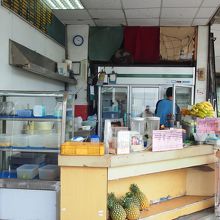 ジューサーミキサーの前に立っている寡黙な男性にメニューを指差すと手早く粗めにカットしたフルーツを機械にかけてカップに注いでくれます。味が薄まるのか氷も入れずに渡してくれます。まさにフルーツそのままの味です。メニューの全てがある訳では無い様です。