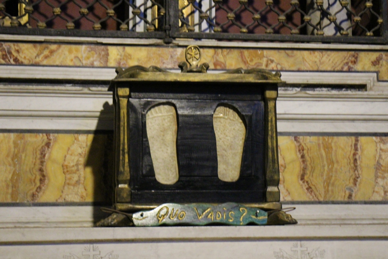 キリストの足跡石や聖セバスティアヌスに放たれた矢・ベルニーニの弟子のジュゼッペ・ジョルジェッティによる聖セバスティアヌスの彫刻などを見ることができる