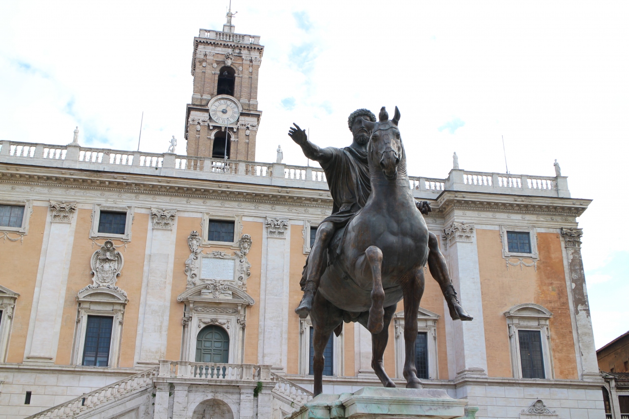 広場にはローマの市庁舎美術館があり、広場の中央にはマルクス・アウレリウスの騎馬像(オリジナルはカピトリーニ美術館にあり、見てきました)