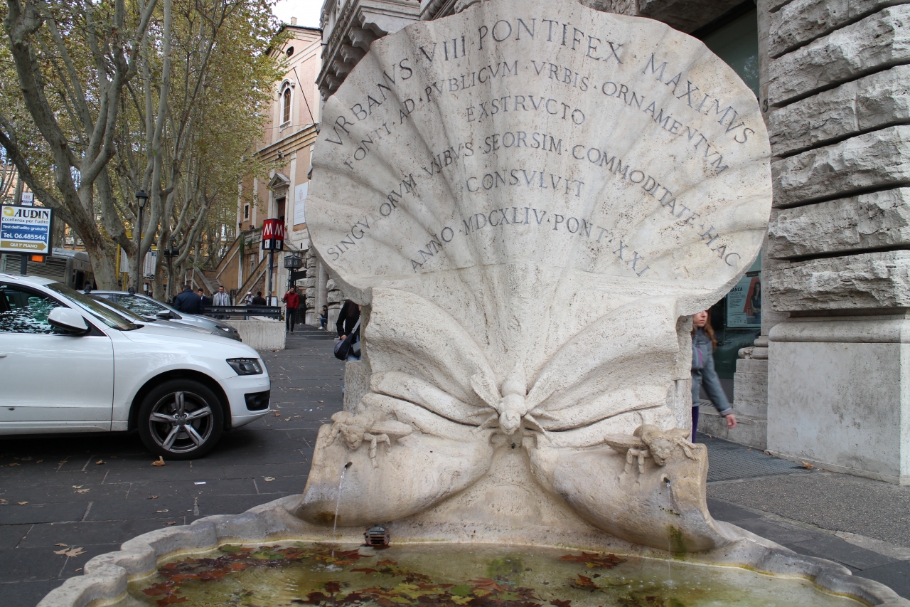 広場から 白い貝殻の形の噴水が見えたら 車に気を付けて近づいて見て下さい