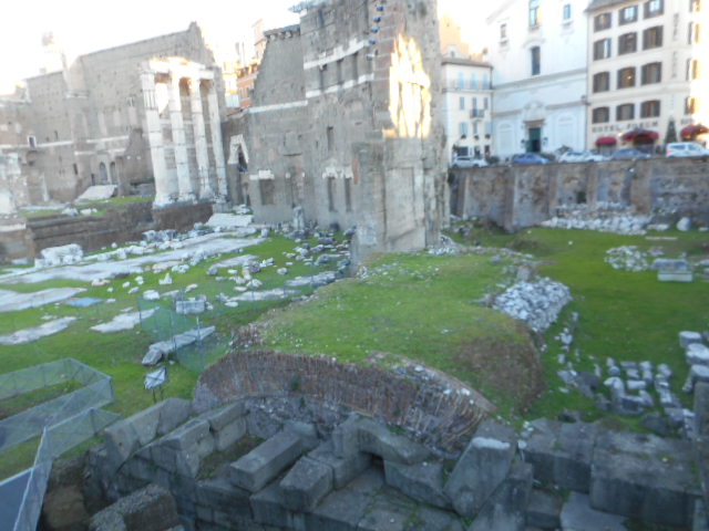 古代ローマの政治、商業の中心だったのが”フォロ・ロマーノ”です。フォロとは公共広場だそうで、見所も多く、敷地が広いのは皇帝たちがそれぞれの自分の権力の象徴としてフォロを造り上げたそうです。3本のコリント式柱が歴史の偉大さを物語っているようでした。